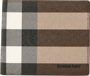 A large-scale check on coated fabric is backed by supple leather inside this bifold wallet designed with plenty of pockets.