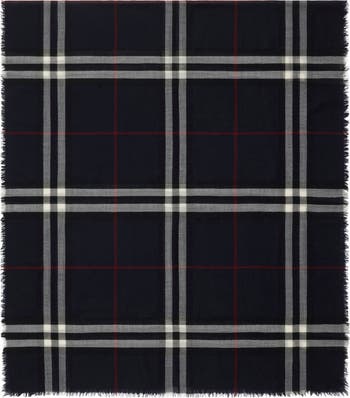 The instantly recognizable checks rendered in a blown-out scale lend archival flair to this lightweight wool scarf trimmed with delicate eyelash fringe.