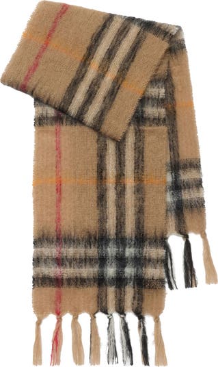 Wrap yourself in heritage with this scarf knit in Scotland from a plush mohair wool blend and patterned with the iconic Burberry Check. Hand-knotted fringe adds a touch of artisanal charm to this timeless accessory.