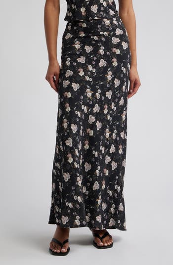 Enchanting wildflowers romance this crinkle-textured maxi skirt made in an appealing figure-skimming silhouette.