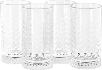 This four 16 Ounce drinkware set is designed with a teardrop shaped embossed exterior that sparkles with brilliance and clarity. Perfect for serving iced teas, cocktails, or any beverage of your choice, each piece complements any style of table setting. Whether you are celebrating with friends or enjoying a casual drink, this set will add a special touch to the occasion. Durable glass construction is dishwasher safe for easy cleanup.