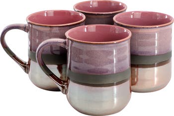 Gibson Home Copper Tonal 4 Piece 18 Ounce Stoneware Cup Set, Main, color, Pink