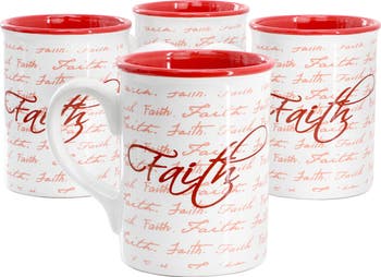 Inspirational Words Faith 4 Piece 16 Ounce Stoneware Mug Set