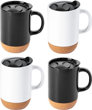 Modani 4 Piece 16.5 Ounce Stoneware Travel Mug Set with Lid and Cork Base