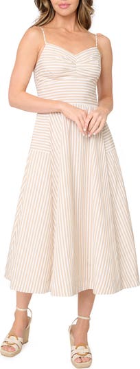 Slender straps top this breezy cotton-blend sundress patterned in soft stripes and designed with a smocked back panel for a perfect fit every time.