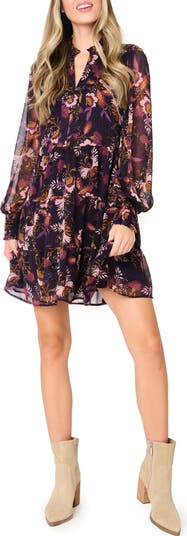 Floral Long Sleeve Chiffon Babydoll Dress