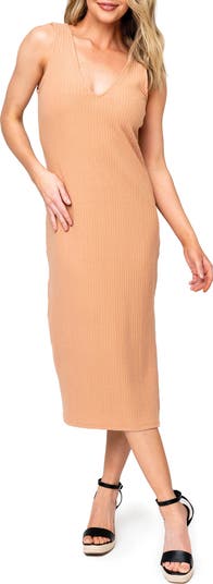Style an effortless look when you slip on a ribbed-knit dress complete with a V-back for an alluring glimpse.