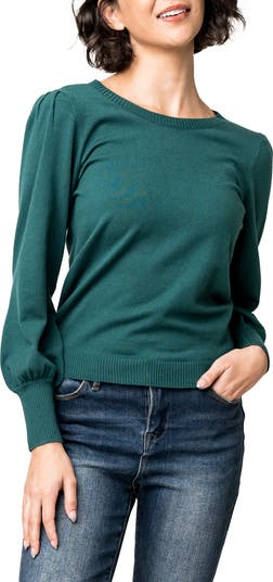 Blouson sleeves frame a casual-chic sweater finished with ribbed trim for effortless work-to-weekend versatility.