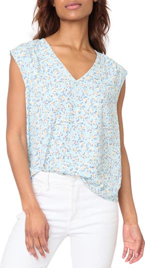 This soft sleeveless top features dainty allover blooms for a charming vibe.
