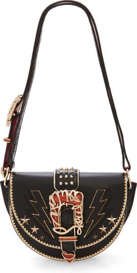 An explosion of lightning bolts and stars bring signature exuberance to this croc-embossed leather bag designed with Western-inspired buckles in a saddle silhouette.