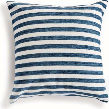 The indoor pillow that lives beautifully outdoors. Enjoy the upscale luxury and durability of Jacquard. With a bold striped pattern, it plays well with any palette. This pillow is weather resistant and responsibly made. Filled with 100% recycled fibers.
