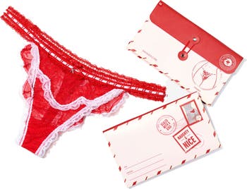 Seal your letter to Santa with something naughty: Savage x Fenty's extraspecial Giftable Lace Thong has sexy ribbon and lace details and a flirty apron panel at the back—all wrapped up in limited-time holiday packaging.