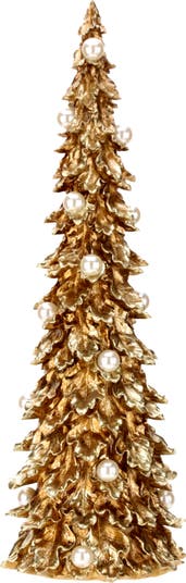 This Gilded Pearl Tree stands 25 inches tall and exudes timeless elegance with its metallic gold finish and delicate pearl accents. Crafted with intricate detailing, each sculpted leaf shimmers in a warm gilded tone, giving the tree a luxurious, festive appeal. Perfect as a tabletop centerpiece or holiday mantel décor, it brings a touch of sophistication and sparkle to any seasonal display.