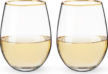 Gild your favorite vintages. With a modern stemless silhouette and dazzling gilded rim, these wine glasses add a subtle glimmer to your table. These wine glasses are perfect for any celebratory occasion or simply a quiet evening glass of wine.