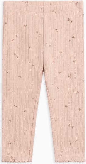 Soft, stylish, and designed with comfort in mind, the Gina Pointelle Leggings are a must-have for your little one's wardrobe. The brushed back fabric creates a thicker knit perfect for cooler weather. Featuring a delicate picot edge detail at the leg openings, these leggings bring a touch of sweetness to any outfit. The elastic waistband ensures a snug yet flexible fit, making them perfect for all-day wear, whether it's playtime or lounging. Crafted from soft, breathable pointelle fabric, the Gina Leggings offer both coziness and style, ideal for layering under dresses or pairing with their favorite top. Keep your little one comfortable and cute with this versatile wardrobe essential!