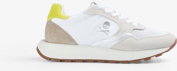 Sneakers made of split leather. Jogging style. Combination of colours and materials in the cut. Contrast sole. Lace-up fastening. Logo detail on side and tongue.