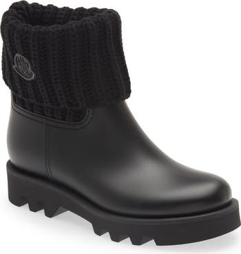 This puddle-ready boot set on a lugged sole is topped with a chunky knit shaft and the signature logo patch.
