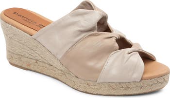 Wide, colorblocked leather straps are skillfully twisted above the vamp of an espadrille-inspired slide sandal lifted by a jute-wrapped platform and integrated wedge heel.