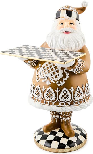 Bring a little sugar and spice to your holiday setup with this handmade gingerbread-inspired Santa. From his icing-trimmed outfit to his checkered tray, every detail is pure magic.