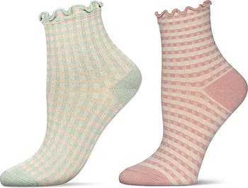 Sweeten any ensemble with these adorable gingham ankle socks featuring lettuce-edge trim and a reinforced heel, toe and cuff.