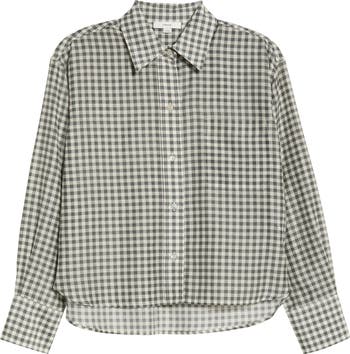Gingham Check Crop Button-Up Shirt