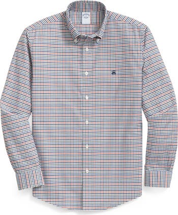 Gingham Check Wrinkle Resistant Stretch Cotton Button-Down Shirt