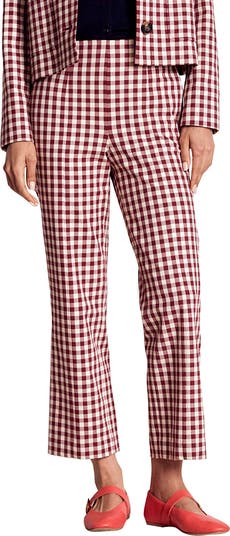 Be picnic ready in cheerfully checked pants cut from a cotton-forward blend in an ankle-grazing silhouette.