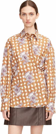 Rebecca Taylor Gingham Daisy Button Down, Main, color, Daisey Toffee Combo