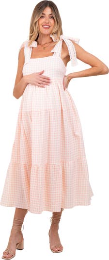 Effortlessly sweet and stylish, our Gingham Lace Trim Shoulder Tie Maternity Maxi Dress is perfect for your special moments. Soft, lightweight fabric and a gentle gingham pattern create a romantic look, while delicate lace trim and adjustable shoulder ties add a feminine touch. The flowing maxi silhouette flatters your bump and offers comfort all day long. Ideal for baby showers, brunches, or a casual day out, this dress seamlessly combines comfort and charm—making it a must-have in your maternity wardrobe!