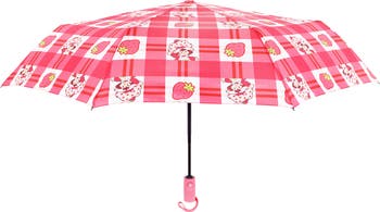 Bring a burst of sweetness to rainy days with this officially licensed Strawberry Shortcake umbrella. Featuring a red and white gingham plaid print adorned with playful strawberry and Strawberry Shortcake graphics, this compact umbrella is as charming as it is practical.