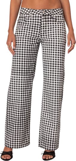 A gingham print enhances the cool vibes of these five-pocket pants cut in a straight-leg silhouette.