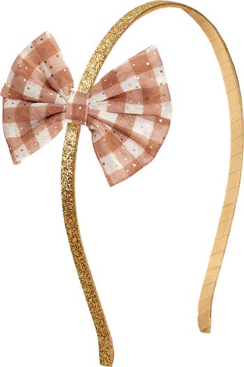 Sweet Wink Gingham Printed Tulle Bow Headband, Alternate, color, Multicolor