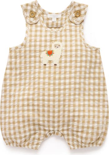 Our Llama Gingham Romper is the perfect style for keeping your little one cool and cute on those warm summer days. Designed in a classic all over gingham, with a sweet fluffy llama applique at the chest, and snap clips for easy dressing. Made from 100% Cotton seersucker for a lightweight style that can layered up or down depending on the weather.