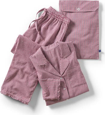 Relax in warm, classically styled Gingham Pyjamas. A yarn-dyed merlot stripe brings a touch of heirloom elegance, while naturally cosy yet breathable fabric offers a soft, airy feel. Its beauty lies in the simplicity of expertly woven, high-quality cotton threads with a 200 thread count, creating a timeless and inviting appeal.
