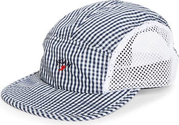 From the New York brand’s ode to coastal New England, this crinkled nylon running cap teams rustic gingham with breathable mesh panels for a look that balances nostalgia and modern performance.