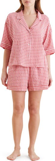 Timeless gingham seersucker will give you a pulled-together look even as you call it a night in these relaxed, lightweight PJs that have a flowy fit with perfect drape.