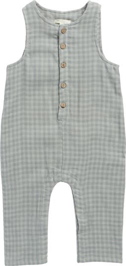 An allover gingham print brings summery sweetness to this sleeveless romper that will keep baby comfortable in breathable cotton.