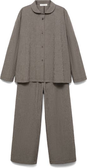 A charming collar and classic gingham print bring vintage-inspired elements to stretch-kissed cotton pajamas punctuated by a pair of handy pockets perfect for lounging comfortably.
