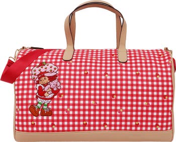 Bring a touch of nostalgia to your travels with this officially licensed Strawberry Shortcake Weekender Duffel Bag! Featuring a charming red-and-white gingham pattern sprinkled with tiny strawberries, this bag captures the sweetness of the classic character holding her beloved pet, Custard. Designed for both style and function, it includes a roomy main compartment, sturdy handles, and an adjustable shoulder strap—perfect for getaways, gym trips, or daily adventures.