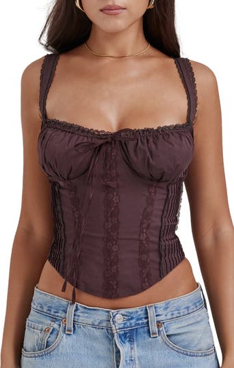 Sugar and spice come to play in this cotton-blend corset edged in lilts of lace and cinched with a laced-up detail and side zip for easy-on convenience.