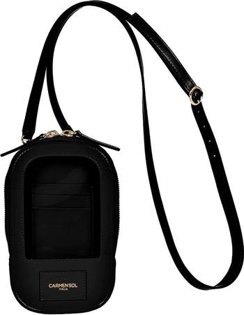 The Gio Smartphone holder is created to store and safely carry your Iphone and credit cards. It has a convenient transparent cover that allow to look at the screen of your device on the go. It comes with a detachable and adjustable vegan leather strap. Also featuring 3 hidden credit cards compartments. This special item may be paired with other "Carmen Sol Italia" collection bags, including of the Gio airpods holder and the canvas collection.