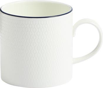 Sip your favorite beverage from this modern bone china cup detailed with a distinctive geometric texture and a hand-applied blue accent line.