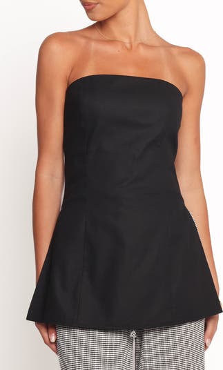 Cut in a shoulder-baring silhouette from a lightweight cotton-and-linen fabric, this pretty top with airy side slits is an essential for warm-weather weekend outings.
