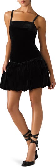 A bubble hem adds a dynamic flourish to this velvety minidress that's ready for a night out on the town.