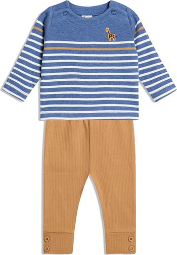 Keep your little one feeling comfy in this sweet set that pairs a striped cotton top featuring an adorable embroidered giraffe with coordinating stretch leggings.