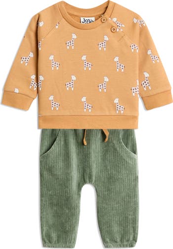 They'll look cute and stay comfortable in this adorable two-piece set featuring a playfully patterned sweatshirt and corduroy leggings.