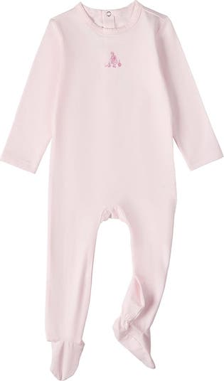 Here's where comfort meets cuteness and charm. Our pretty pink footie comes in our premium blend -- cotton for soothing softness, spandex for flexible stretch. Plus, it has convenient back snaps and cozy elasticized feet. Finishing touch? Our vintage-style graphic -- a sweet little girl feeding a pair of plump ducks..