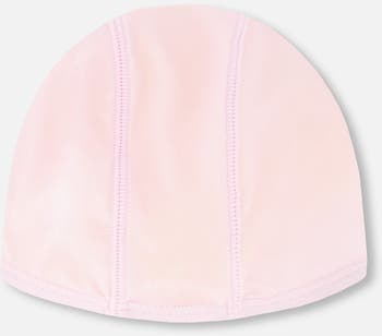 This swim cap in pale pink keeps little swimmers stylish and comfortable in the pool. This swimming accessory features soft stretch fabric which provides a snug fit that stays in place while they splash and play. Made with recycled polyester and elastane, it offers both eco-conscious design and lasting wear.