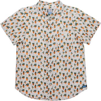 The Girl Party Shirt gives our summertime neutrals a splash of fun with its vibrant, eye-catching print, while its front gives us style optionsbuttoned up for the office and open over our tank for laidback wanderings.