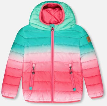 Designed for warmth in mid-season temperatures, this transitional outerwear piece is coated for dirt and water repellency and loaded with functional details. The quilted horizontal baffles are filled with lightweight polyfill insulation for wearing in chilly temperatures, while an attached hood and zip front closure provide added protection and keep the cold out. Diagonal zipper pockets offer added function.